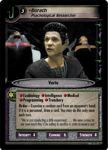 Order - Examine a random card from opponent's hand. If it is a personnel, draw a card. You may do this only once each turn.