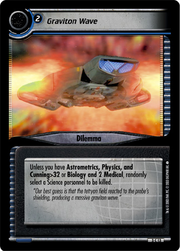 "Our best guess is that the tetryon field reacted to the probe's shielding, producing a massive graviton wave."