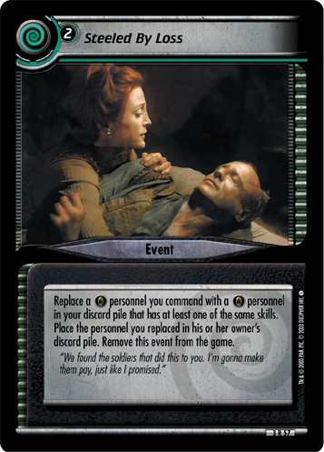 Replace a [Baj] personnel you command with a [Baj] personnel in your discard pile that has at least one of the same skills. Place the personnel you replaced in his or her owner's discard pile. Remove this event from the game.
