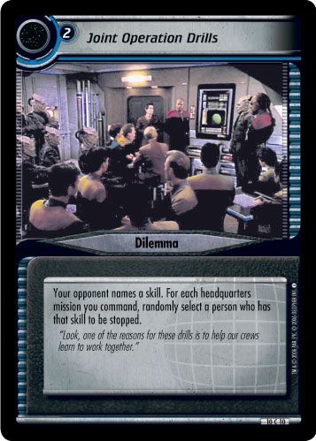 Your opponent names a skill. For each headquarters mission you command, randomly select a person who has that skill to be stopped.