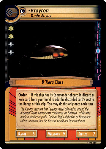 The Krayton was the first Ferengi vessel allowed to attend the bi-annual Trade Agreements conference on Betazed. While they made a significant profit, DaiMon Tog's abduction of Federation Citizens ensured that the Ferengi would not be invited back.