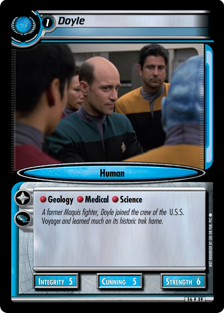 A former Maquis figher, Doyle joined the crew of the U.S.S. Voyager and learned much on its historic trek home.