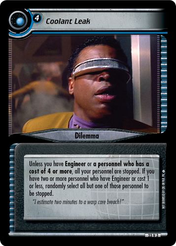 Unless you have Engineer or a personnel who has a cost of 4 or more, all your personnel are stopped. If you have two or more personnel who have Engineer or cost 1 or less, randomly select all but one of those personnel to be stopped.