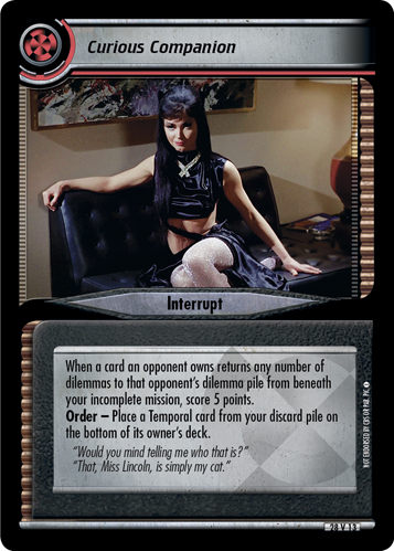 When a card an opponent owns returns any number of dilemmas to that opponent's dilemma pile from beneath your incomplete mission, score 5 points.