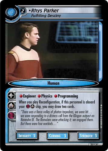 When you play Reconfiguration, if this personnel is aboard your [Pa][TNG] ship, you may draw two cards.