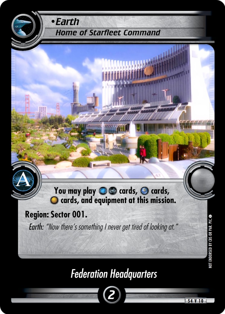 You may play [Fed][DS9] cards, [E] cards, [NA] cards, and equipment at this mission.