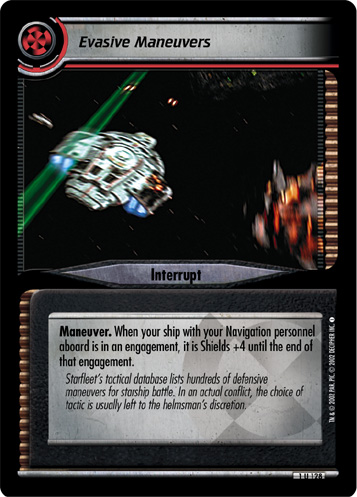 Maneuver. When your ship with your Navigation personnel aboard is in an engagement, it is Shields +4 until the end of this engagement.