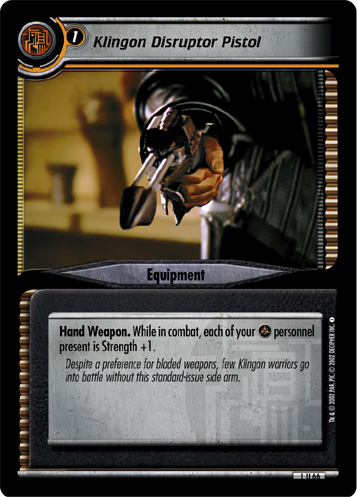 Despite a preference for bladed weapons, few Klingon warriors go into battle without this standard-issue side arm.