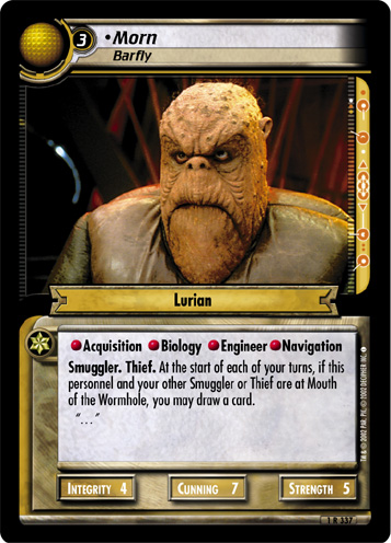 Smuggler. Thief. At the start of each of your turns, if this personnel and your other Smuggler or Thief are at Mouth of the Wormhole, you may draw a card.