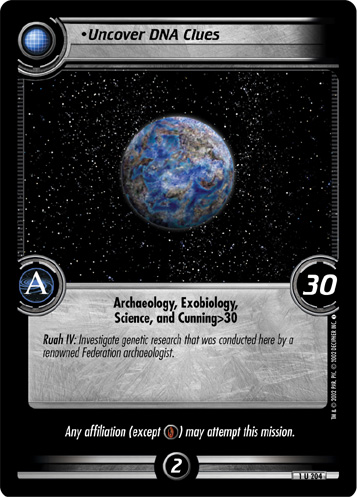 Ruah IV: Investigate genetic research that was conducted here by a renowned Federation archaeologist.