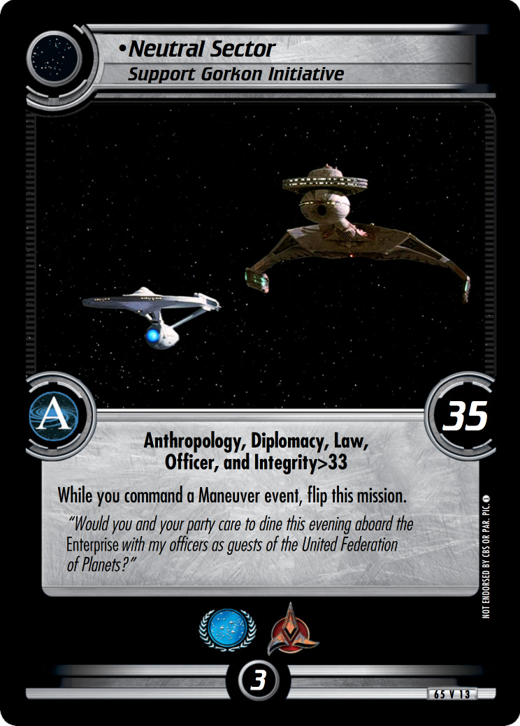 "Would you and your party care to dine this evening aboard the Enterprise with my officers as guests of the United Federation of Planets?"