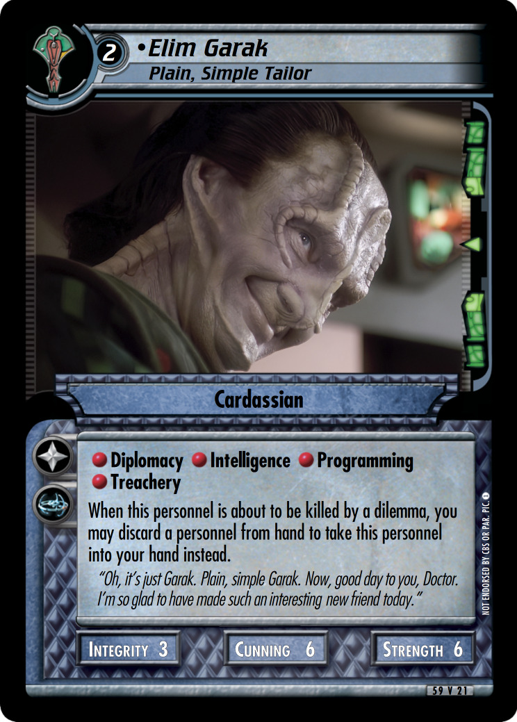 "Oh, it's just Garak. Plain, simple Garak. Now, good day to you, Doctor. I'm so glad to have made such an interesting new friend today."
