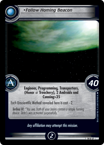Terlina III: "You see, both of your brains contain a simple homing device. Data's was activated purposefully."